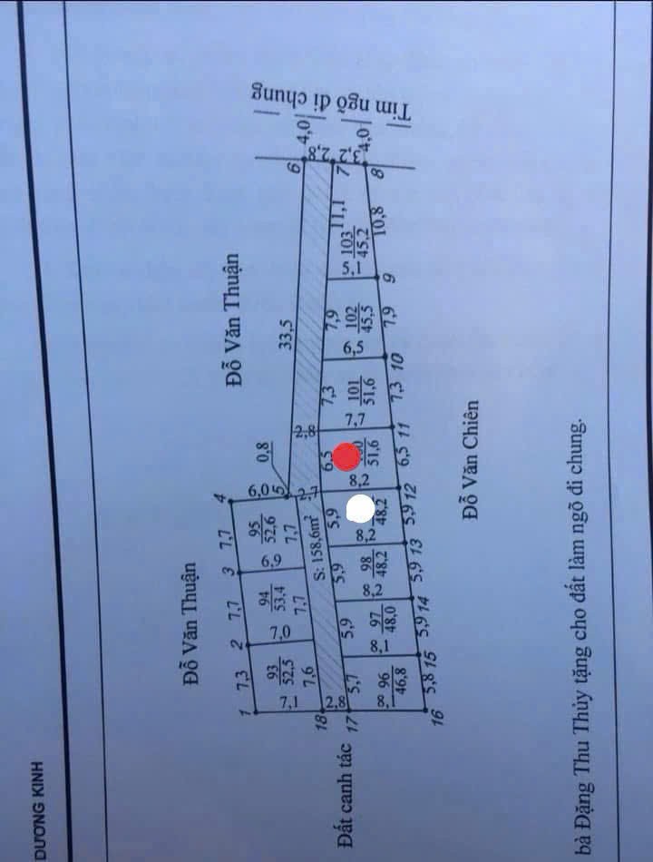 -Diện tích: 51.6m²-Mặt tiền: 6.5m cực rộng-Hướng: Bắc-Đường trước đất: Ngõ ô tô vào tận nơi-Vị trí: Hưng Đạo – Dương Kinh, gần Mạc Đăng Doanh-Tiện ích: Cách UBND – trường học – chợ – KCN chỉ 500m-Pháp lý: Sổ đỏ từng lô, sang tên nhanh-Khu dân cư đông, hạ tầng đồng bộ, tiềm năng tăng giá mạnh-Giá: 8xx triệu-Tiềm năng: Mặt tiền lớn hiếm – vị trí gần khu công nghiệp – thanh khoản cực tốt-CTA: Gọi ngay để xem đất thực tế & chốt giá đẹp
