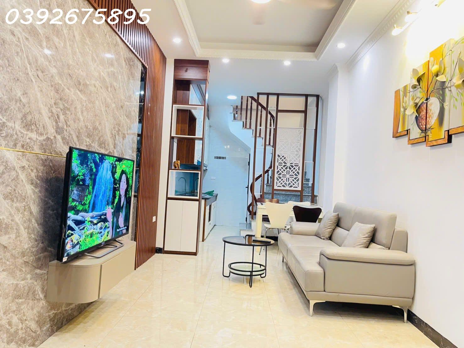 Nhà xây 5 tầng kiên cố, có thang máy, công năng chuẩn: phòng khách rộng, bếp riêng, 3 phòng ngủ khép kín, phòng thờ, sân phơi. Nội thất cao cấp, cửa gỗ lim, sàn gỗ, cầu thang đá tự nhiên, hệ thống chiếu sáng âm trần hiện đại. Thiết kế thông thoáng, đón nắng gió tự nhiên quanh năm.